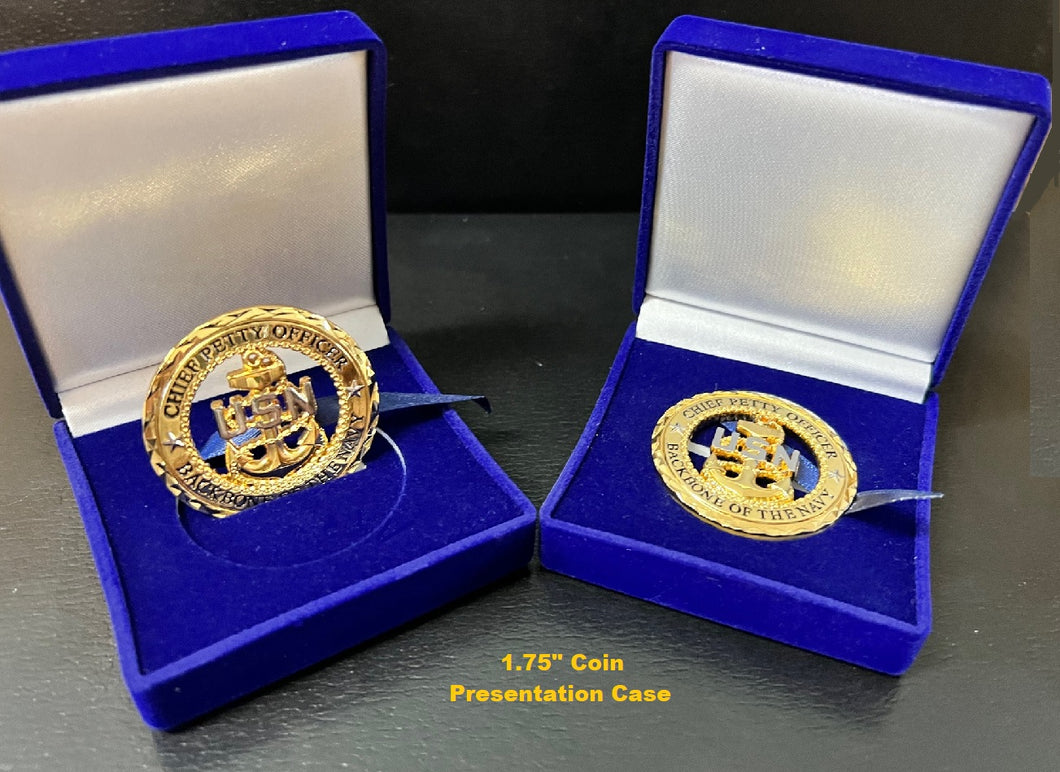 We offer quality coin cases, presentation cases, hard plastic coin cases, coin cases with stands, and velvet bags to display or present your individual coin. Each coin case is available to house a single coin in 3 different coin sizes, 1.5”(40mm) 1.75”, or 2” coins.